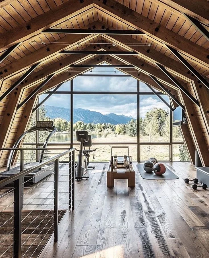 High ceilings, natural wood, and generous windows frame views of working fields, forest edges, and open sky — creating a sense of calm without separating guests from the land that sustains the experience.